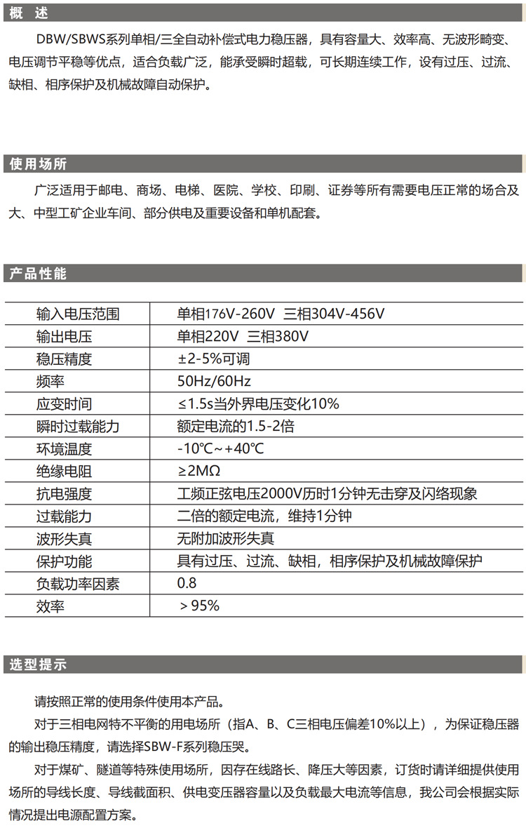DBW/SBW大功率電力補(bǔ)償式穩(wěn)壓器