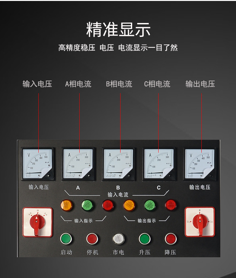 SBW系列三相全自動(dòng)補(bǔ)償式電力穩(wěn)壓器,具有容量大、效率高、精度高、穩(wěn)壓范圍寬、保護(hù)功能強(qiáng)、無波形畸變、電壓調(diào)節(jié)平穩(wěn)、運(yùn)行可靠及使用維護(hù)簡單等優(yōu)點(diǎn)。適合負(fù)載廣泛,能承受瞬時(shí)過載,可長期持續(xù)工作,設(shè)有過壓、過流、缺相、相序保護(hù)及機(jī)械故障自動(dòng)保護(hù)。該穩(wěn)壓器由補(bǔ)償模塊、AD采樣模塊、單片機(jī)控制模塊、升壓/降壓等操作模塊、系統(tǒng)供電模塊及顯示模塊等幾大模塊組成